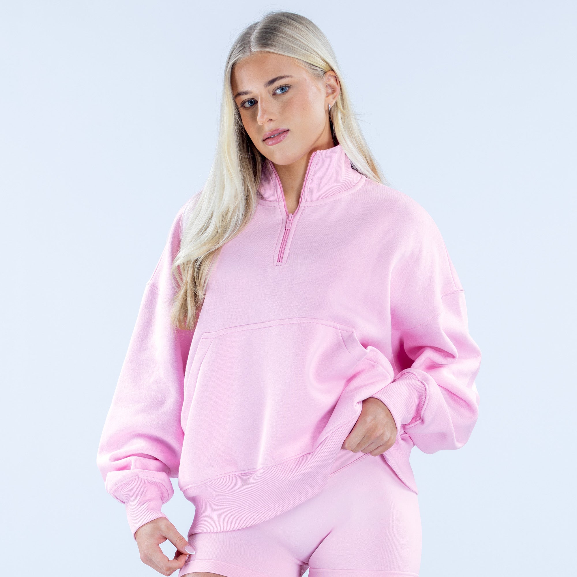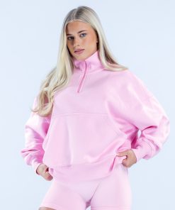 Tags: _label_NEW, Hoodies & Sweatshirts, JMR::Signature Quarter Zip Sweatshirt, Light Rose Pink, New Releases, Pink, restock recent, SAPG::Signature Quarter Zip Sweatshirt::Light Rose Pink, Signature, Sweatshirts, tracksuit, Womens, Womenswear